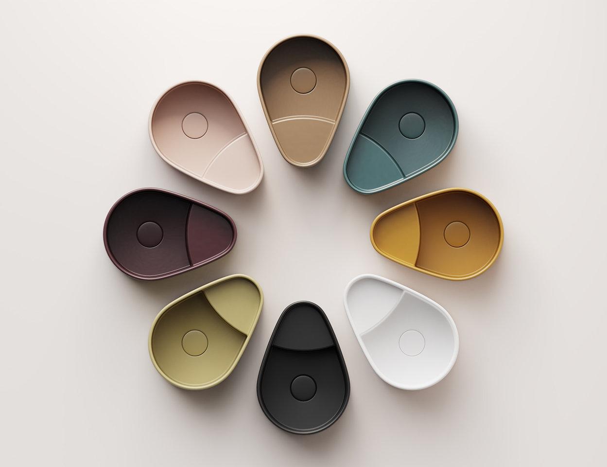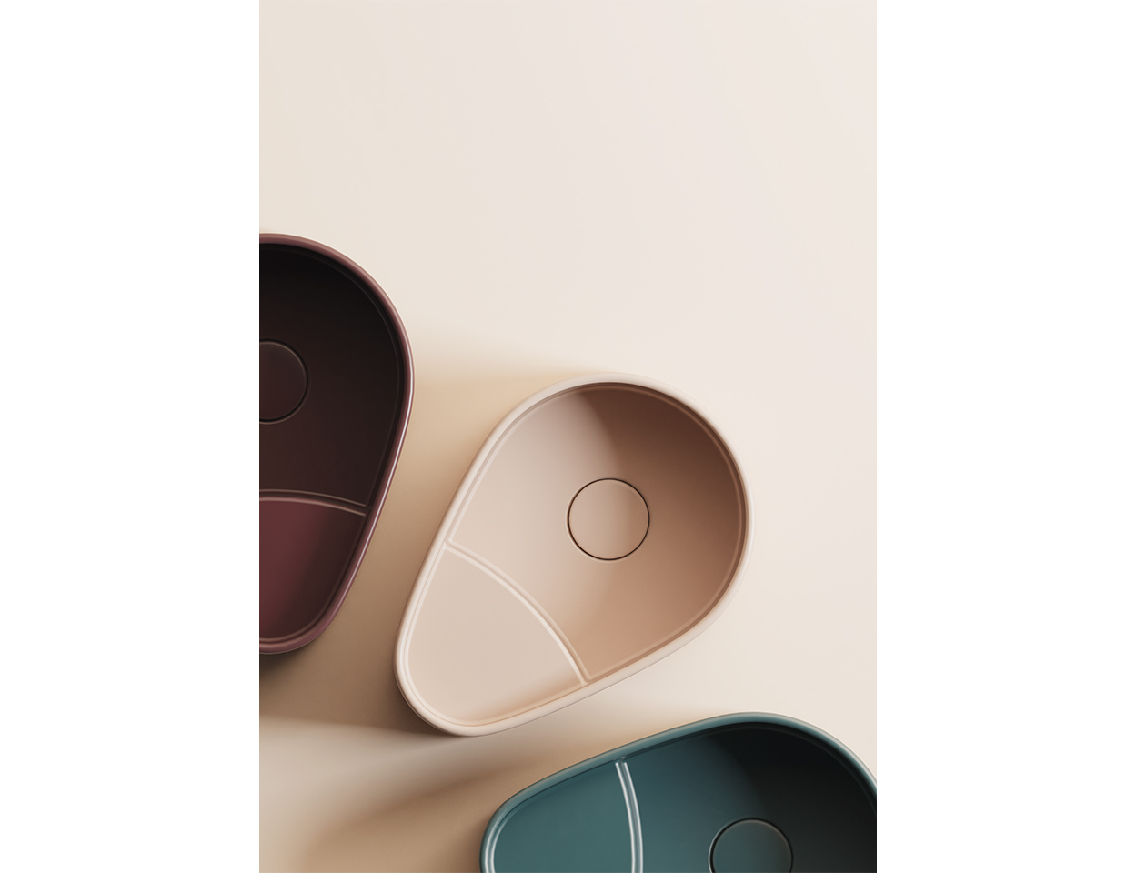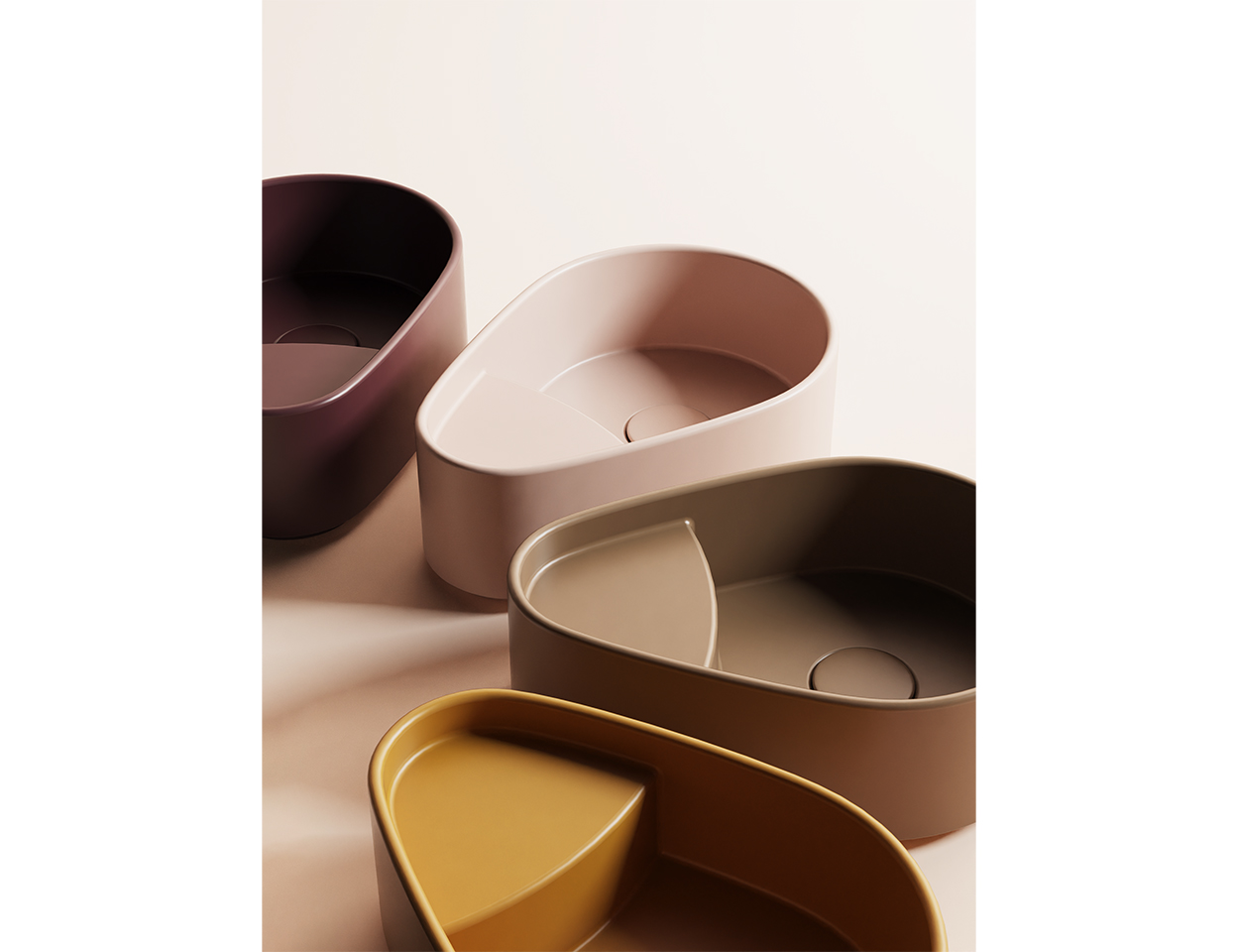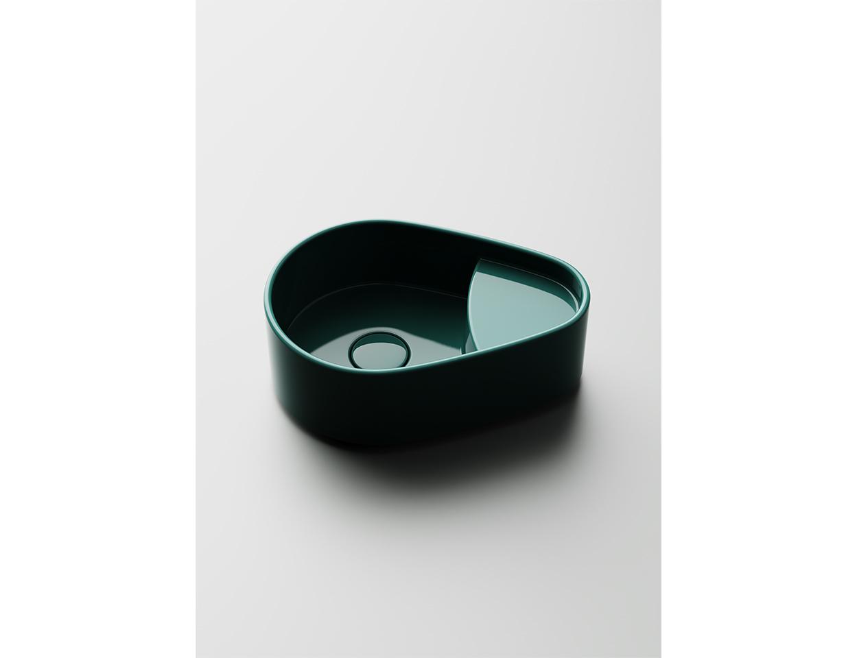 “There have always been British motorcycle fuel tanks in the studio. Solitary objects, scattered throughout the space like metal sculptures, capable of conveying their form even before their function, discernible only to the passionate eye. Compact volumes, shaped by the flow, in which containment and aerodynamics coincide. Tank stems from this observation. A compact washbasin, with a soft, continuous form, conceived as a single, controlled volume.